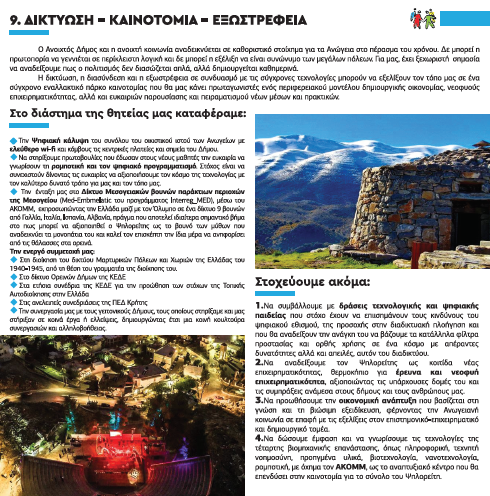 Ο ένατος άξονας του προγράμματος της δημοτικής κίνησης του Εμμανουήλ Καλλέργη “Τα Ανώγεια Μπροστά” αφορά την δικτύωση, την καινοτομία και την εξωστρέφεια. Αναλυτικά: