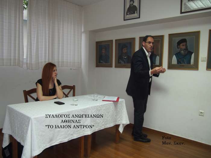 Να σου αναφέρω ότι συζήτηση έγινε και πριν την έναρξη της κανονικής παρουσίας και ομιλίας μου, αλλά και μετά το τέλος της. Είναι καλό να σμίγουμε . Η κρίση μας έκανε να αποξενωθούμε, μας έφτασε σε σημείο να μην ασχολούμαστε με τα κοινά προβλήματα αλλά μόνο με τα προσωπικά μας. Σαν Δήμος αυτό το κομμάτι που μας αναλογεί, είναι να δημιουργήσουμε τις συνθήκες, να ανοίξουμε την κουβέντα, να αισθανθεί ο Ανωγειανός όπου και να ζει, ότι μπορεί να προσφέρει στον τόπο του, από το δικό του μετερίζι, από τη δική του επιστημονική κατάρτιση, είτε από οτιδήποτε άλλο..ολοκληρώνει