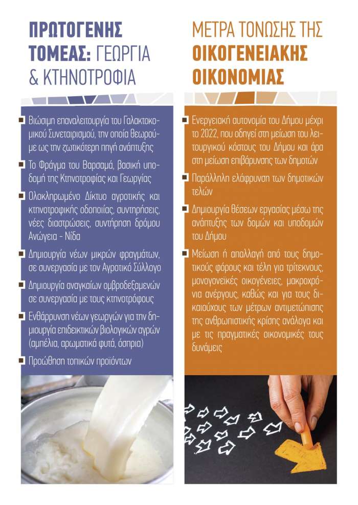 -Βιώσιμη επαναλειτουργία του Γαλακτοκομικού Συνεταιρισμού, την οποία θεωρούμε ως την ζωτικότερη πηγή ανάπτυξης