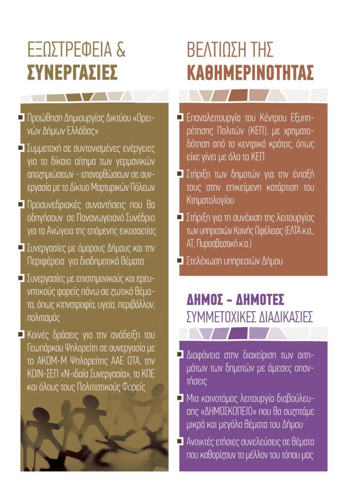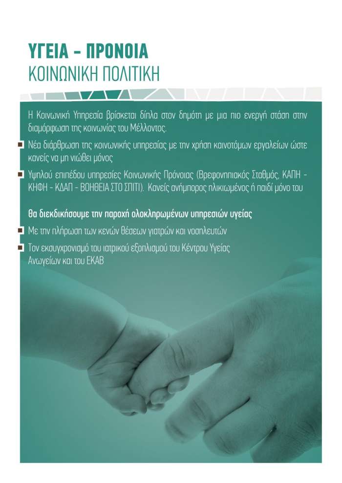 Για την Κοινωνική Ευημερία του ανθρώπου, που έχει επιλέξει εδώ και αιώνες να ζει σε τούτο τον τόπο και να παράγει ανθρώπινες αξίες. Γι αυτό τον άνθρωπο σχεδιάζουμε: