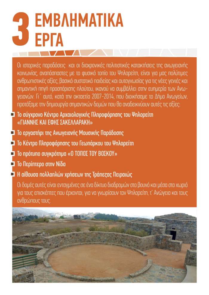 Γι΄ αυτό, κατά την οκταετία 2007-2014, που διοικήσαμε το Δήμο Ανωγείων, προτάξαμε την δημιουργία σημαντικών δομών που θα αναδεικνύουν αυτές τις αξίες: