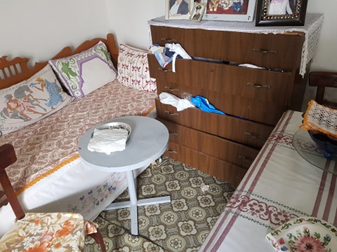 Από το σπίτι που θύμιζε βομβαρδισμένο τοπίο και ιδιαίτερα ο χώρος της κρεβατοκάμαρας δεν λείπει τίποτα, όπως και τίποτα δε θα μπορούσαν οι ληστές να πάρουν καθώς πρόκειται για μια γυναίκα που ζει χρόνια λιτά και σεμνά. Μια μικρή μόνο τηλεόραση που δεν πήραν οι ληστές ίσως θα ήταν το μοναδικό “τρόπαιο” που θα μπορούσαν να σηκώσουν από το σπίτι του “Αστρινού” που για χρόνια ήταν το σημείο αναφοράς των παιδιών και των μεγαλύτερων ανθρώπων της γειτονιάς, με τη μεγάλη και φιλόξενη αυλή του.