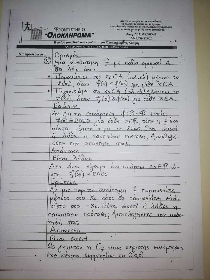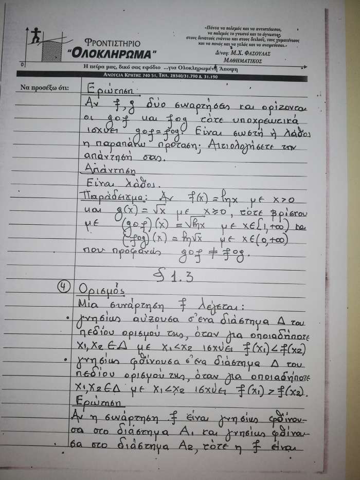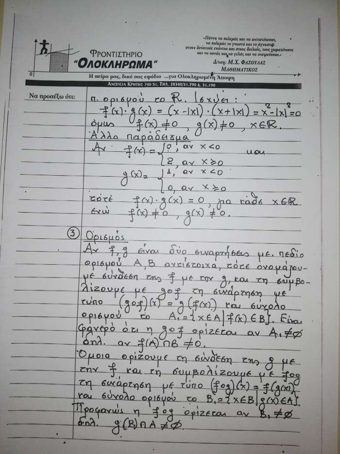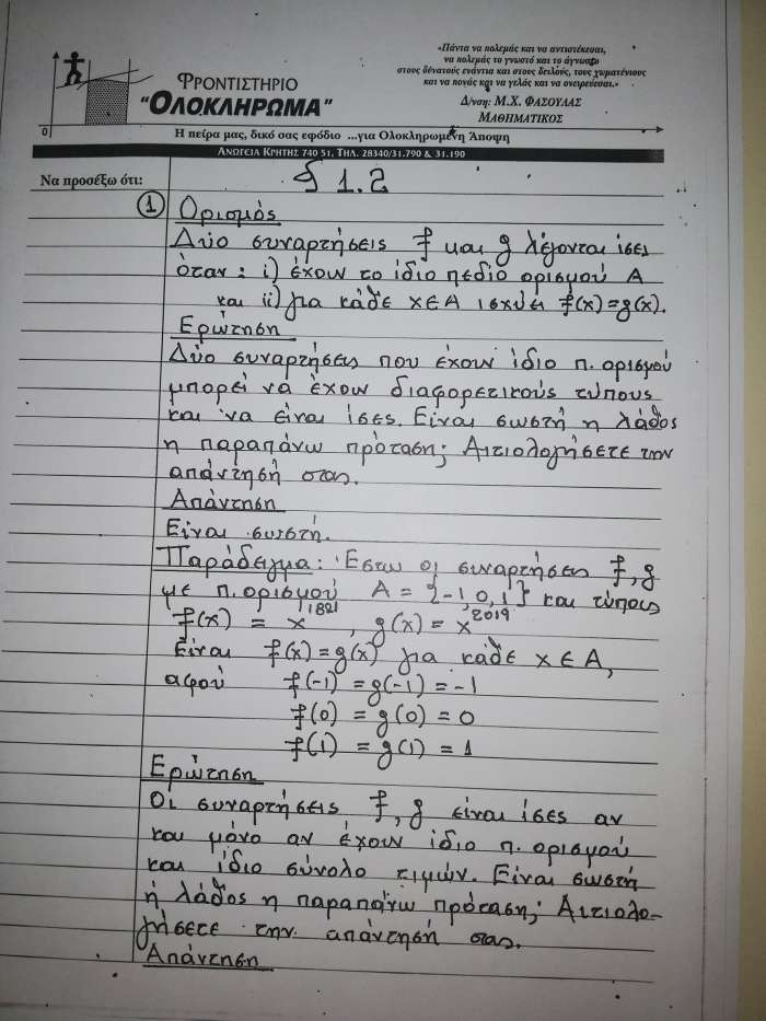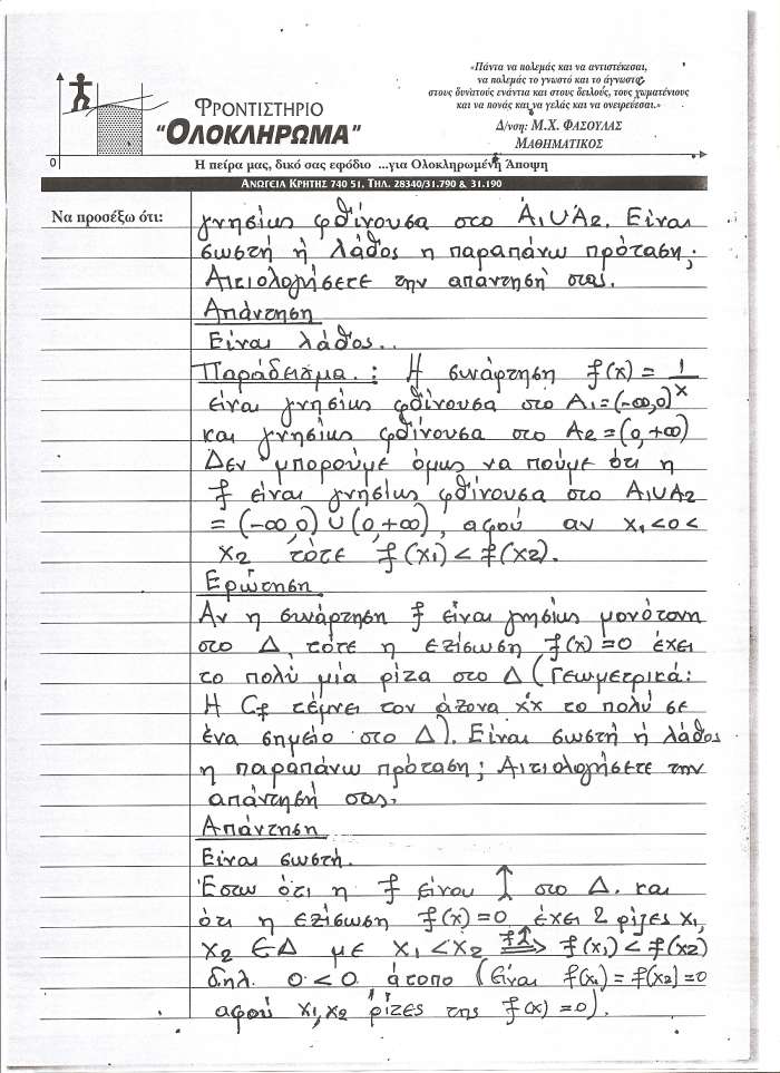 Σημείωση: Η ΑΝΩΓΗ σε συνεργασία με τον Μανόλη Φασουλά θα σας παρουσιάσει σε έξι ενότητες το βοήθημα του καθηγητή των Μαθηματικών στους μαθητές της Γ’Λυκείου που θα δώσουν το καλοκαίρι Πανελλήνιες εξετάσεις. Σήμερα παρουσιάζουμε την πρώτη ενότητα στις έξι παρακάτω φωτογραφίες.