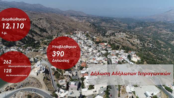 Κατά τη συστηματική αυτή εργασία επεξεργάστηκαν 262 αιτήσεις για ηλεκτροδοτούμενα ακίνητα και 128 αιτήσεις για μη ηλεκτροδοτούμενα ακίνητα. Τα αποτελέσματα που έδωσαν ήταν εντυπωσιακά. Διορθώθηκαν συνολικά 12.110 τ.μ.
