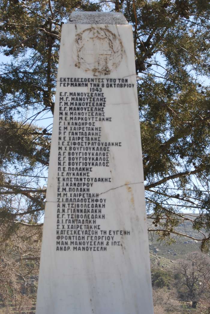Το μνημείο πεσόντων στη θέση Γουρνόλακκος Ψηλορείτη. Στις 4 και 5 Σεπτεμβρίου 1943, εκτελέστηκαν 32 πατριώτες από άνδρες της Βέρμαχτ του Διοικητή Κρήτης Μπρόγερ