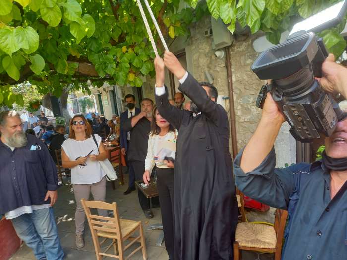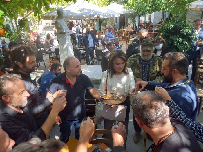 Έξω από το δημαρχείο, ο γνωστός Ανωγειανός μαντιναδολόγος, Γιώργης Μπέρκης, της αφιέρωσε τις παρακάτω μαντινάδες: