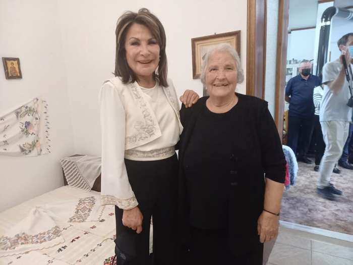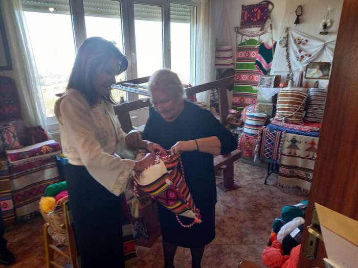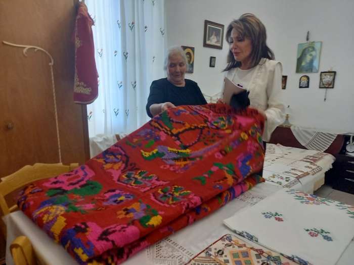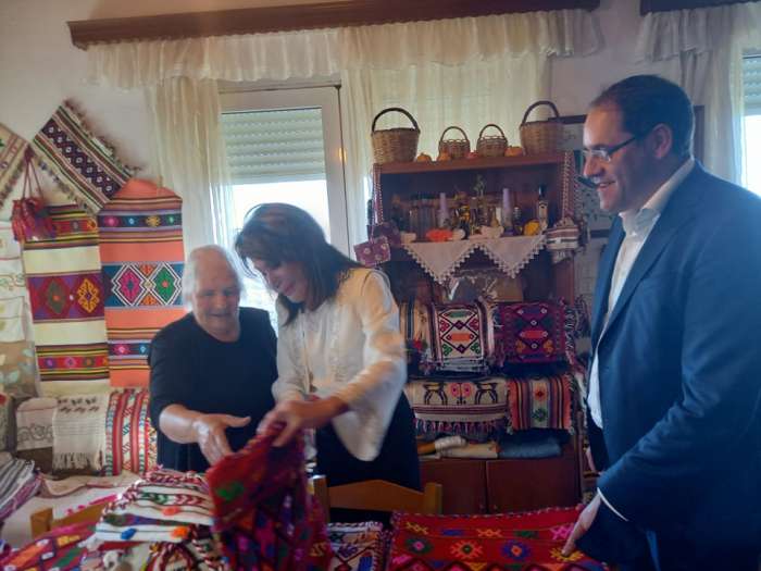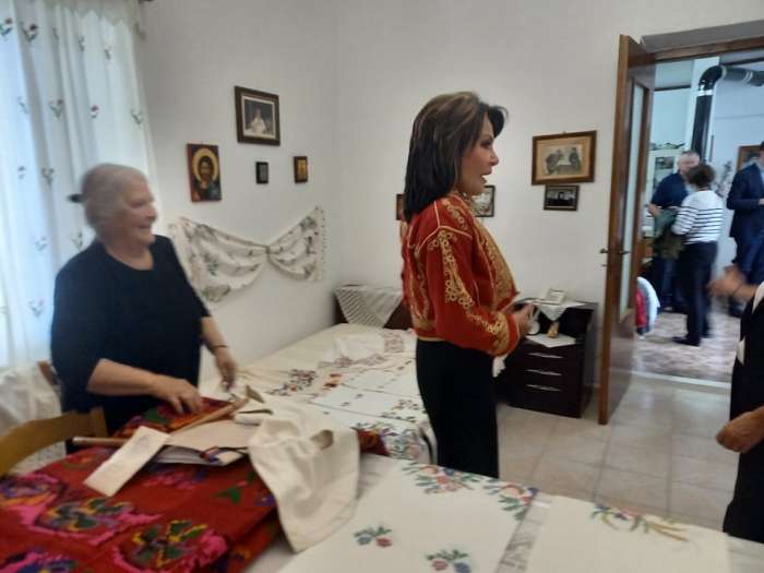 Στο σπίτι της Βαγγελιώς Νταγιαντά, μιας υφάντρας των Ανωγείων με 70 χρόνια πείρας στον αργαλειό, η Γιάννα Αγγελοπούλου Δασκαλάκη, ενθουσιασμένη από τις δημιουργίες της, αγόρασε βούργιες και υπέροχα υφαντά για αυτήν, τις κόρες και τις εγγονές της όπως τόνισε, δηλώνοντας γοητευμένη από την υποδοχή της κας Νταγιαντά που την δέχτηκε με θερμά λόγια αγάπης, στο υπέροχο σπίτι της κατακλυσμένο από υφαντά που βρίσκεται πίσω από τον Αι Γιώργη.