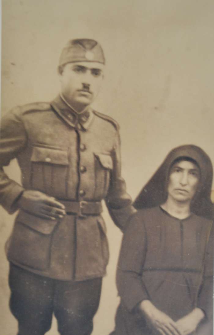 Ο Γεώργιος Μπουτσάκης του Κωνσταντίνου με τη μητέρα του από το χωριό Ασκοί, ανάπηρος του Ελληνοϊταλικού πολέμου