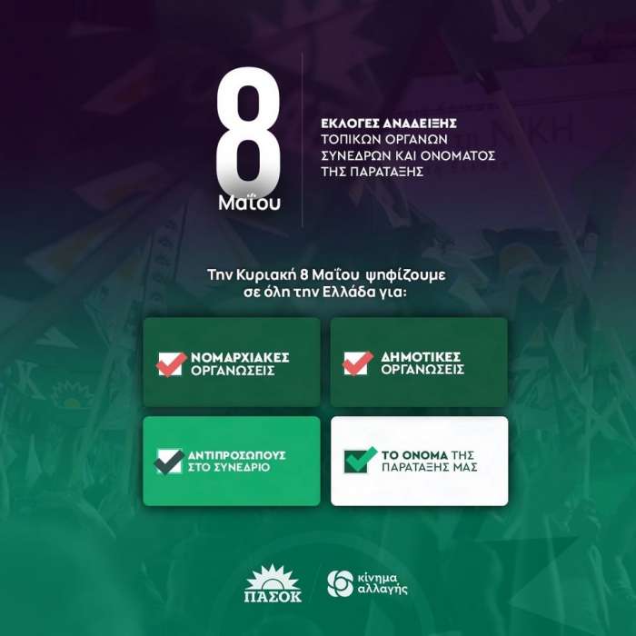 Την Κυριακή 8 Μαΐου από τις 7:00 το πρωί έως τις 7:00 το απόγευμα θα διεξαχθεί η ψηφοφορία για τις εκλογές οργάνων και συνέδρων του Κινήματος Αλλαγής στα Ανώγεια. Παράλληλα θα υπάρχει και κάλπη για την επιλογή του νέου ονόματος της παράταξης.