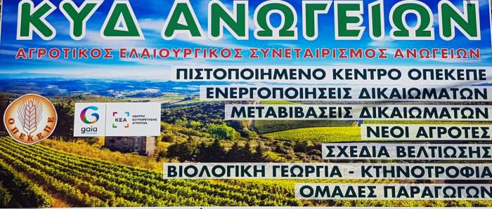“Με απόφαση του Δ.Σ του Αγροτικού Συνεταιρισμού Ανωγείων, καλούνται τα μέλη του Συνεταιρισμού σε ετήσια Τακτική Γενική Συνέλευση της 4η Μαΐου 2022, ημέρα Τετάρτη και ώρα 7 μ.μ το απόγευμα στην αίθουσα συνεδριάσεων του δημοτικού συμβουλίου του δήμου Ανωγείων, για λήψη αποφάσεων στα παρακάτω θέματα: