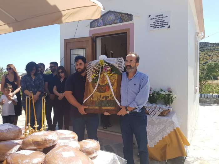 Χωρίς άλλη κουβέντα φανερά στενοχωρημένος και ταραγμένος σηκώθηκα ,πήρα το αυτοκίνητο κι έχοντας στην τσέπη 98 ευρώ ξεκίνησα από το Βενιζέλειο να έρθω στα Ανώγεια και να διαρμιστώ το θέμα της εκκλησίας, με την προϋπόθεση ότι οι λίγες οικονομίες που είχα ,είχαν εξανεμιστεί. Φθάνοντας στα Ανώγεια, συνάντησα τον οικοδόμο, γείτονα και φίλο μου Γιάννη Νταγιαντά ή Λαμπρινογιάννη . Του ανέφερα το πρόβλημα μου με την εκκλησία και ακόμη ότι δεν είχα χρήματα να του δώσω άμεσα, αλλά μπορούσα να του δίνω 1000 ευρώ στο τέλος κάθε μήνα. Ο Γιάννης δέχτηκε και άρχισε άμεσα την ανέγερση της εκκλησίας,την ολοκλήρωση της οποίας εμείς απολαμβάνουμε σήμερα. Δεν μπόρεσε όμως να δει η πολύ-αγαπημένη μου σύζυγος. Πιστεύω όμως ότι από εκεί ψηλά που βρίσκεται ,από την γειτονιά των Αγγέλων, θα βλέπει το εκκλησάκι της, θα μας βλέπει όλους κι η Άγια Ψυχή της θα αγάλλεται..”
