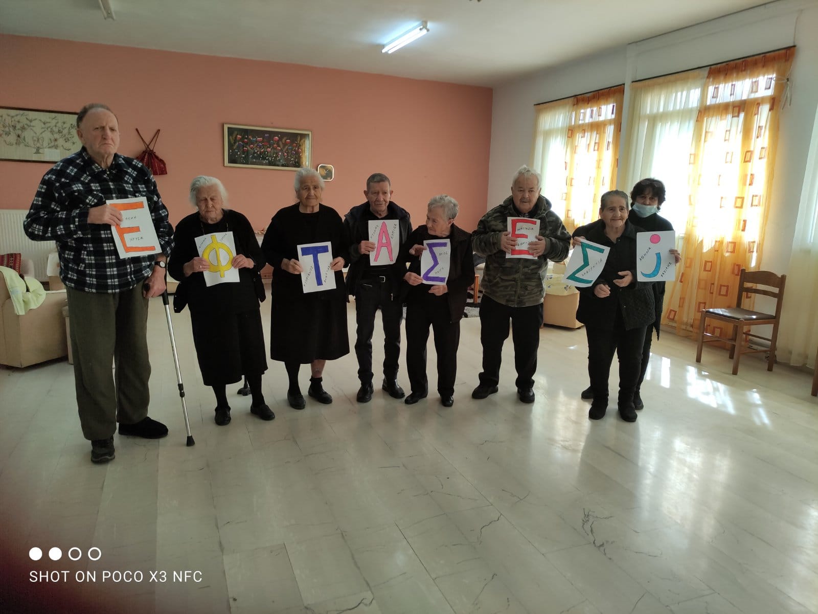 Στο Κέντρο Ημερήσιας Φροντίδας Ηλικιωμένων (ΚΗΦΗ), με το σύνθημα “Ήταν όλοι τους παιδιά μας” ηλικιωμένοι άντρες και γυναίκες έφτιαξαν μια ωραία δημιουργία όπου καρτέλες με γράμματα σχηματίζουν την λέξη “Έφτασες;” και ανάμεσα στα γράμματα τα ονόματα κάποιων από τους νεκρούς νέους φοιτητές του δυστυχήματος.