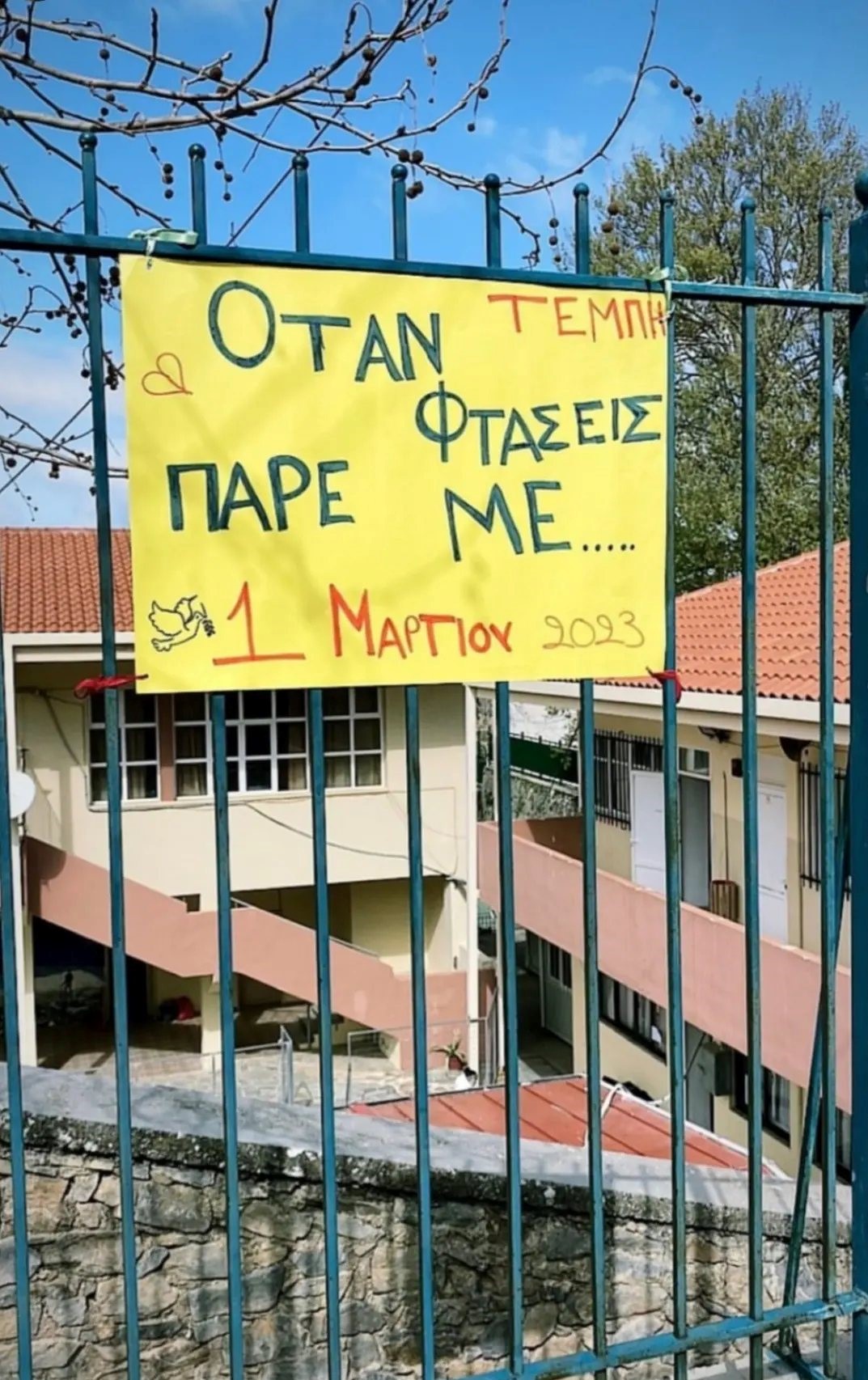 Από την άλλη πλευρά η νεολαία των Ανωγείων, τίμα με πανό που έφτιαξε και ανάρτησε στα κάγκελα της πόρτας του “Σταυράκειου” Γυμνασίου και Λυκείου, τους νεκρούς των Τεμπών. “Όταν Φτάσεις πάρε με.” αναφέρει χαρακτηριστικά το μήνυμα του πανό, με ολόκληρη τη μαθητική κοινότητα των Ανωγείων, να είναι συγκλονισμένη από το τραγικό αυτό γεγονός που στοίχισε τη ζωή σε πολλά νέα παιδιά, φοιτητές που βρίσκονται ανάμεσα στο θλιβερό κατάλογο των 57 νεκρών μέχρι στιγμής.