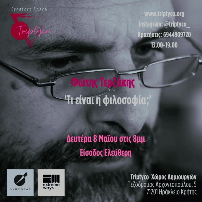 Οι εκδηλώσεις της ομάδας των Ανωγείων “Ανηφοράς” ξεκινούν την Δευτέρα 8 Μάϊου στις 20:00 σε συνδιoργάνωση με το Extreme Ways στον φιλόξενο χώρο του Triptyco με μια πολύ ενδιαφέρουσα συζήτηση με τον Φώτη Τερζάκη: