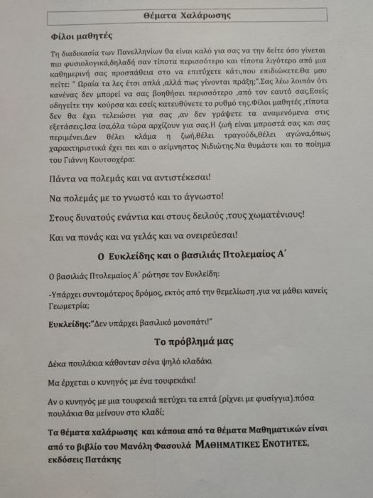 Φιλοδοξία μας δεν είναι να “πιάσουμε” τα θέματα των Πανελληνίων Εξετάσεων!