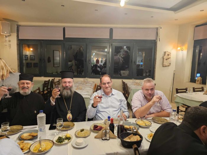 Αργότερα έδωσε την ευλογία του σε όλους τους πιστούς και παρευρέθηκε σε τραπέζι που δόθηκε προς τιμήν του στην παραδοσιακή ταβέρνα “Αροδαμός”.