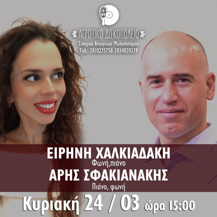 Ένα μουσικό ταξίδι στον χρόνο με την Ειρήνη Χαλκιαδάκη και τον Άρη Σφακιανάκη αυτή την Κυριακή το μεσημέρι στο αγροτικό δισκοπωλείο. Για κρατήσεις & πληροφορίες: 6980976609-2834020339-2810225758 & [email protected]