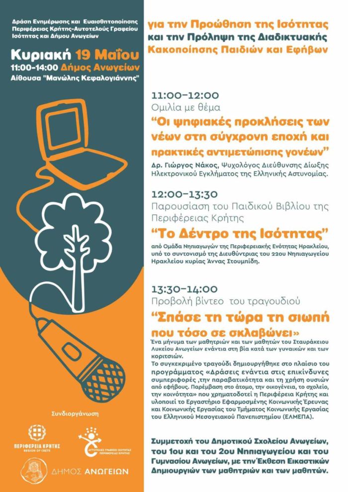 Εκδήλωση την Κυριακή για την προώθηση της ισότητας & την πρόληψη διαδικτυακής κακοποίησης παιδιών & εφήβων