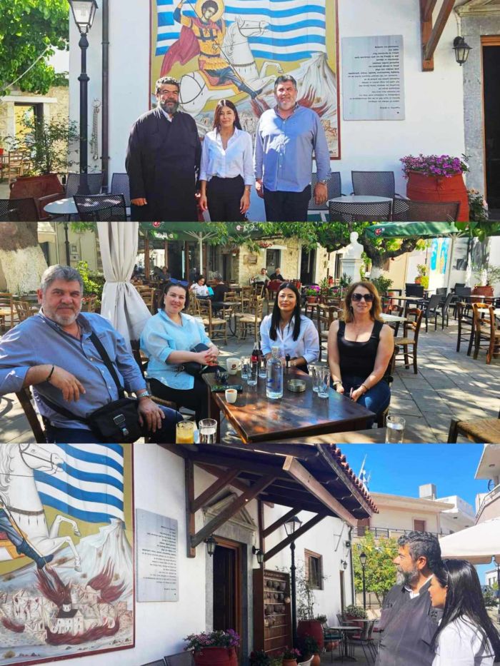 Η πρόεδρος του κόμματος βρέθηκε το μεσημέρι στην πλατεία Μεϊντάνι, μαζί με τους συνεργάτες της, ενώ επισκέφθηκαν την εκκλησία του Αγίου Γεωργίου, με τον πάτερ Ανδρέα Κεφαλογιάννη ιερωμένο του Ναού να απαντάει σε ερωτήσεις της για τις τοιχογραφίες εντός και εκτός του Ναού.