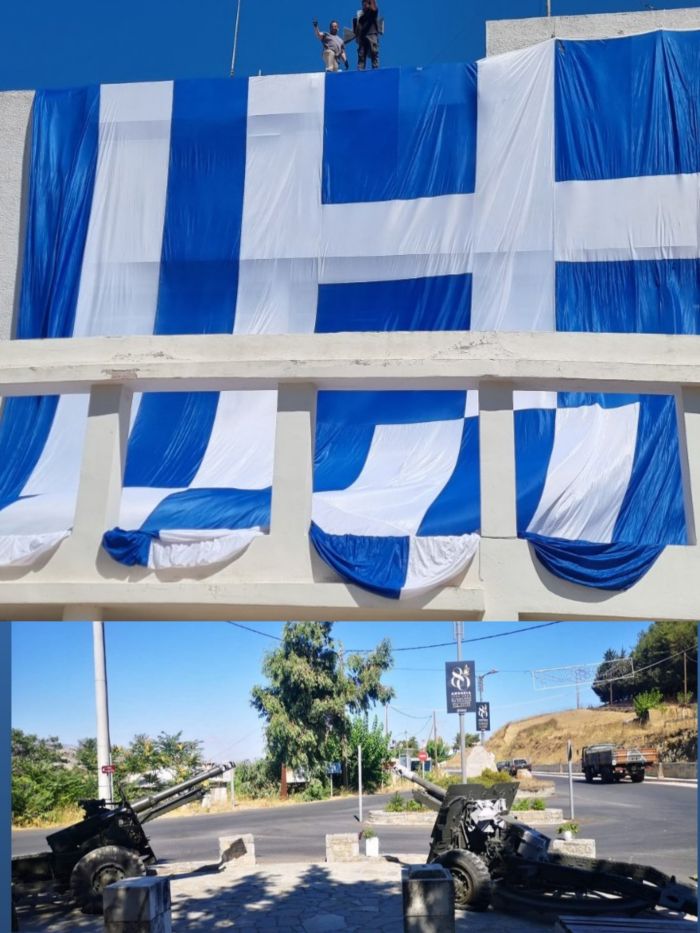 Μια μεγάλη Ελληνική σημαία ύψωσε ο δήμος Ανωγείων στην πλατεία Αρμί με τις επετειακές εκδηλώσεις για το Ολοκαύτωμα των Ανωγείων να συνεχίζονται το επόμενο τριήμερο όπου και θα κορυφωθούν το βράδυ της 13ης Αυγούστου στο θέατρο Νίκος Ξυλούρης.