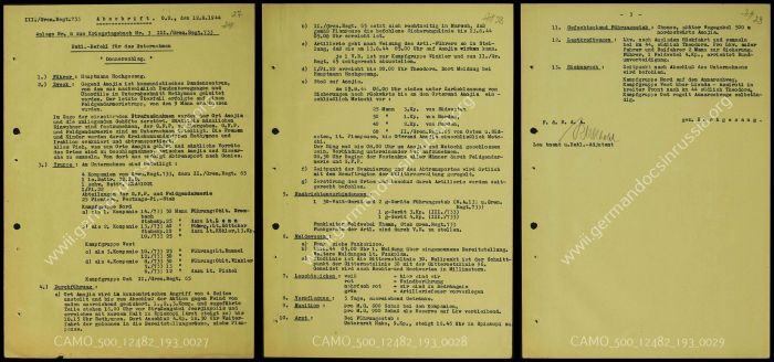 - b) Το ΙΙ./σύνταγμα πεζικού 65 προελαύνει εγκαίρως προκειμένου σύμφωνα με το σχέδιο στάσης να καταφτάσει στην γραμμή περιφρούρησης έως την 13.08.44 στις 05.00 η ώρα.