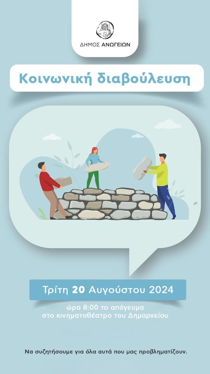 Σε μία κοινωνική διαβούλευση για να συζητήσουμε για όλα αυτά που μας προβληματίζουν.