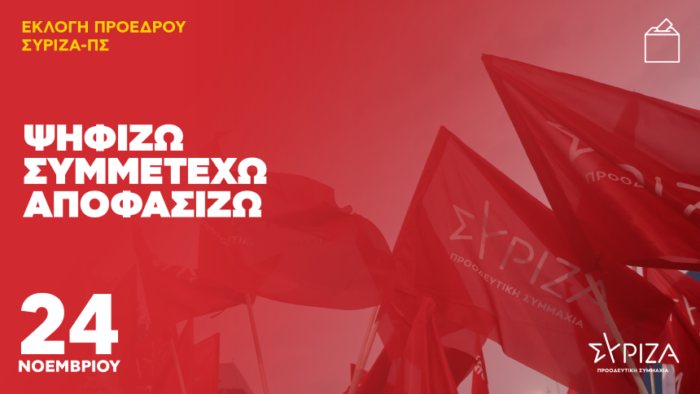 Την Κυριακή 24 Νοέμβρη εκλέγουμε πρόεδρο ΣΥΡΙΖΑ ΠΣ.