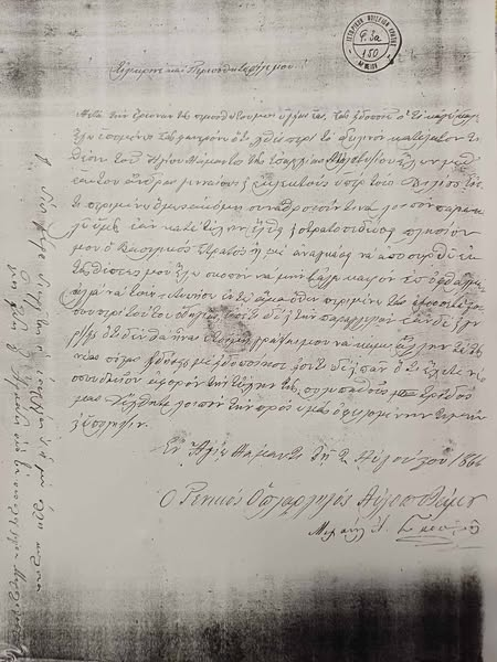 -Δημοσιεύω σήμερα μία από τις ενυπόγραφες αυτές επιστολές του Καπετάν Μιχάλη με ημερομηνία 2-Αυγούστου-1866.