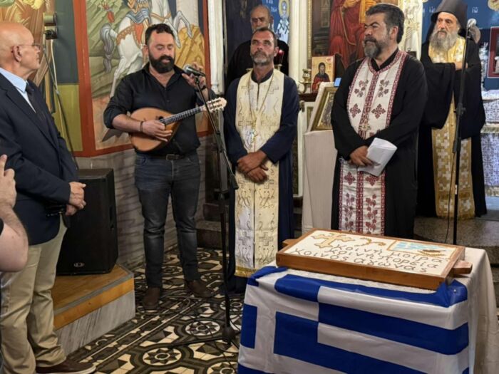 O πρόεδρος του Πολιτιστικού Συλλόγου Ανωγείων Βασίλης Δραμουντάνης, τραγούδησε το “Μήνυμα” του ποιητή Γιώργη Καράτζη, μέσα στην εκκλησία του Αγίου Γεωργίου στο Μειντάνι και συγκίνησε Έλληνες και Κυπρίους.