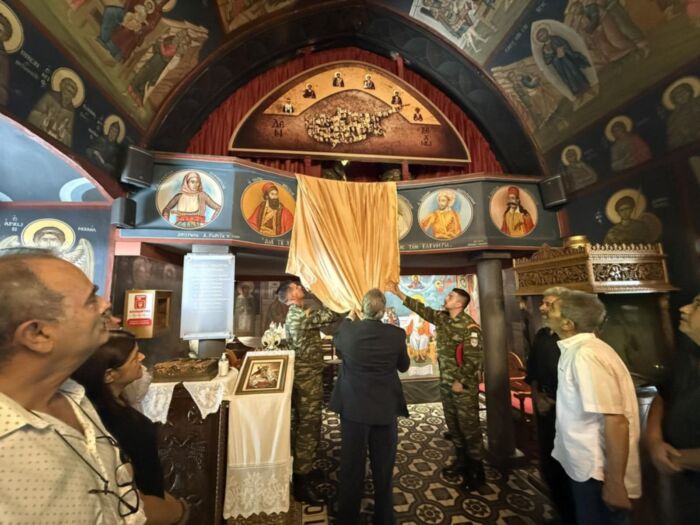 Τα αποκαλυπτήρια έκανε ο Υπουργός Εθνικής Άμυνας της Κύπρου, Βασίλης Πάλμας, παρουσία του Υπουργού Κλιματικής Κρίσης και Πολιτικής Προστασίας Γιάννη Κεφαλογιάννη, του Περιφερειάρχη Κρήτης Σταύρου Αρναουτάκη, του δημάρχου Ανωγείων Σωκράτη Κεφαλογιάννη, του Αντιπεριφερειάρχη Τεχνικών Έργων Νίκου Ξυλούρη, του πρώην πρέσβη της Σερβίας Ντούσαν και της προέδρου της Πανελλήνιας Επιτροπής Γονέων και Συγγενών Αδήλωτων Αιχμαλώτων και Αγνοουμένων, Μαρίας Καλμπουρτζή, στρατιωτικών και άλλων επισήμων.