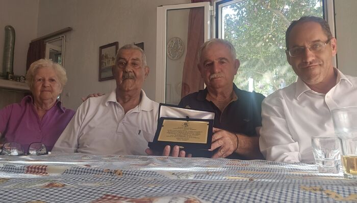 Συγκινημένος ήταν ο Μανώλης Δασκαλάκης και η σύζυγος του Αργυρώ με την πλακέτα στα χέρια τους, για την τιμή που τους έγινε 35 χρόνια μετά, δείχνοντας ότι οι καλές πράξεις και η γενναιοδωρία δεν ξεχνιούνται και έχουν τον σεβασμό όλων των Ανωγειανών.