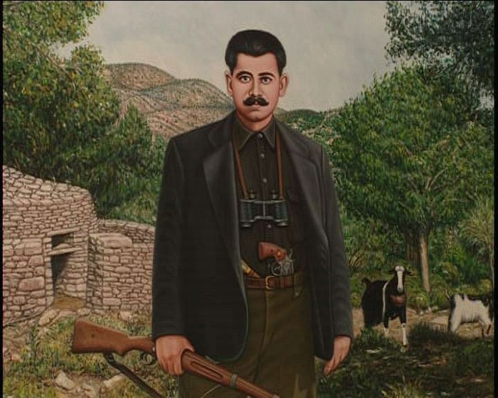 Επήγα, εγώ, έκατσα με τον συγχωρεμένο το Ζαχάρη και τονέ παρηγορούσα με δυό – τρεις φίλους, που ήμαστανε μαζί. Μετά από ένα τέταρτο περίπου, εκατεβαίνανε από πάνω, από τσι σκάλες του δημαρχείου πέντε-έξι Γερμανοί και έσερναν κι έναν άνθρωπο. Τον είχαν δεμένο από πίσω και φορούσε κι έναν γαμπά. Τον κατεβάζουν και τονέ φέρνουνε δίπλα στους δυο Γερμανούς. Αυτός δεν εστράφηκε καθόλου προς το πλήθος, γιατί από κάτω ήταν η οικογένειά του και δεν ήθελε να τσι προδώσει. Τον πιάνει, λοιπόν, ο Γερμανός αξιωματικός, από το γαμπά, από την κεφαλή και τονέ σφεντουρά χάμε και βγάνει από την τσέπη του, μία φωτογραφία, πολύ μεγάλή και του λέει: