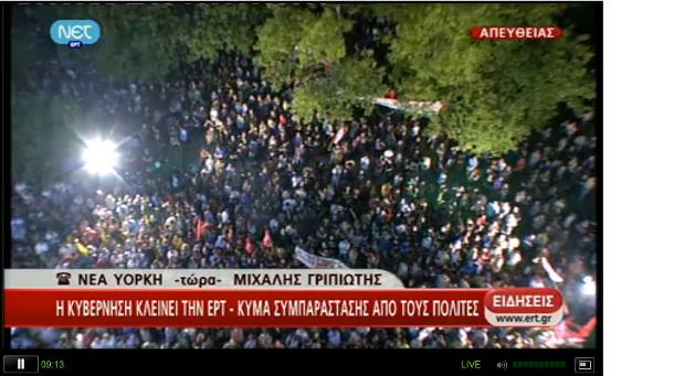 Ταυτόχρονα εκφράζουμε τη συμπαράστασή μας στους εργαζομένους και ζητάμε από τον Πρωθυπουργό να αναθεωρήσει την απόφασή του για το κλείσιμο της ΕΡΤ και να επανέλθει το σήμα στην Ελληνική Ραδιοφωνία και Τηλεόραση.